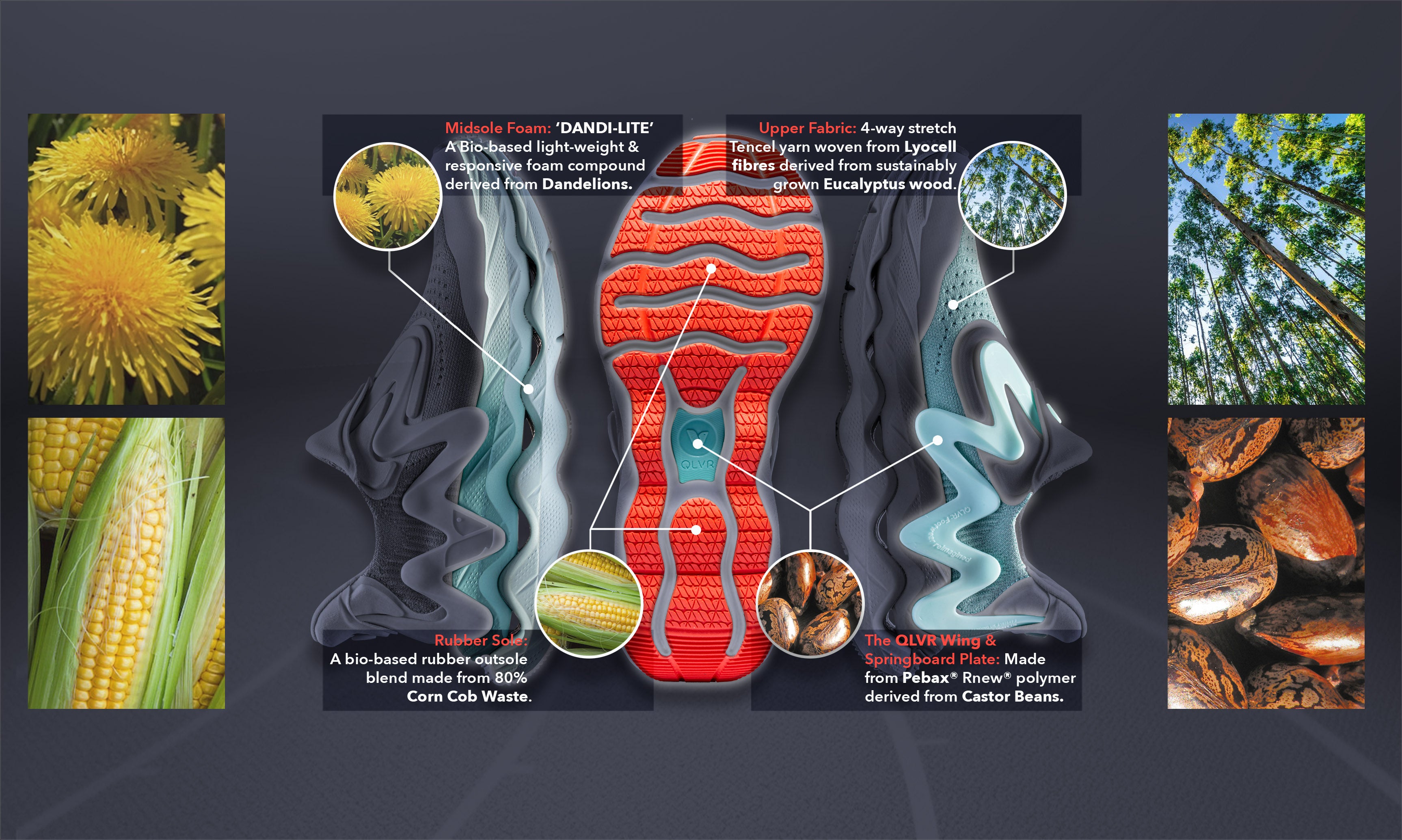 Working with the world's most innovative materials companies, we've sourced premium sustainable compounds that deliver peak performance. From beans to blooms, every component in your QLVR Running Slipper is thoughtfully selected to minimize environmental impact without compromising on power.